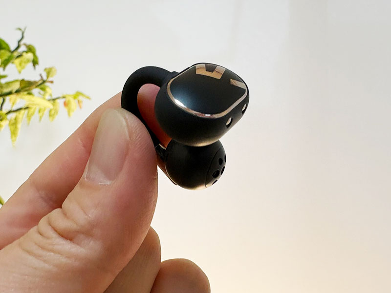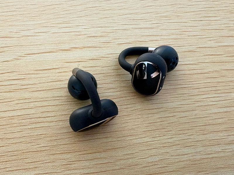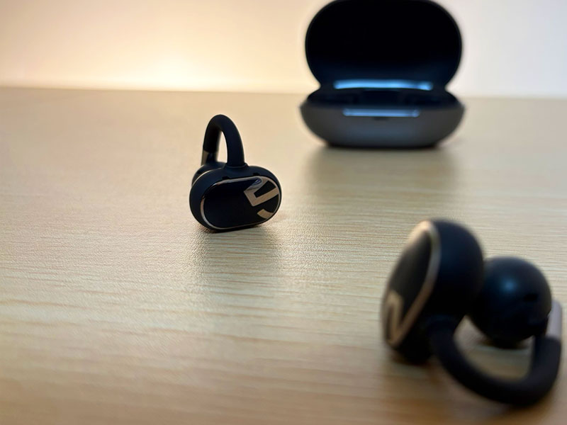 SOUNDPEATS Clip1は「耳をふさがない」新発想のイヤーカフ型デザインを採用。片耳わずか約5gという超軽量設計で、つけているのを忘れるほどの快適さだ。