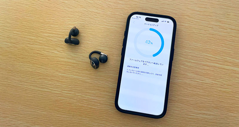 それから低音がしっかりと鳴っています。オープンイヤー型は低音が抜けてしまうイメージがあったのですが、独自の「DynamicEQ™ Pro アルゴリズム」の効果はなのか音圧ではなく音質で感じることができています。